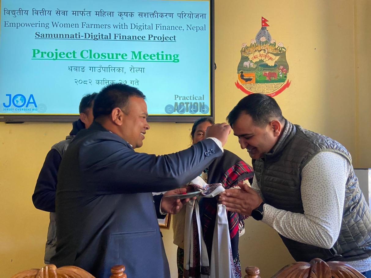 समुन्नति डिजिटल फाइनान्स परियोजना अन्तर्गत डिप्रोक्स नेपाल र प्राक्टिकल एक्सनको प्राविधिक तथा आर्थिक सहयोगमा विद्युतीय वित्तीय सेवा मार्फत महिला कृषक सशक्तिकरण परियोजनाको आयोजना थबाङ गाउँपालिका अन्तर्गत विभिन्न वडाका बासिन्दाहरुलाई डिजिटल शिक्षा, वित्तीय साक्षरता, डिजिटल वित्तीय साक्षरता, महिला सशक्तिकरण लगायतका कार्यहरु गरी अगस्ट, २०२२ देखि नोभेम्बर, २०२५ सम्म सञ्चालन भएको हो ।