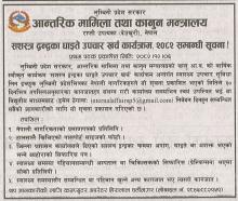 कार्यक्रम सञ्चालनको लागि आवेदन/प्रस्ताव आव्हान गरिएको सूचना ।