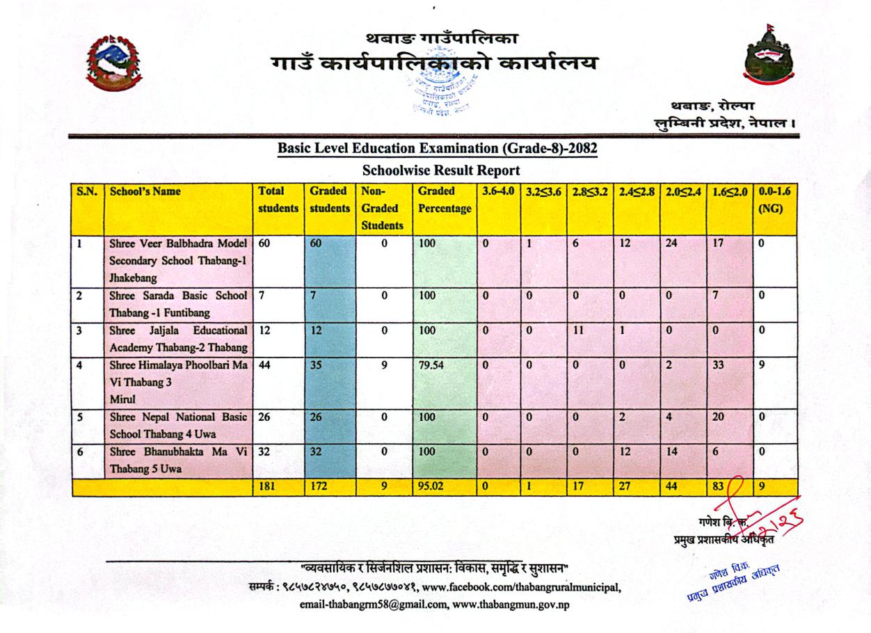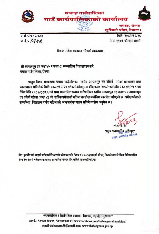 » नतिजा प्रकाशन गरिएको सम्बन्धमा ।