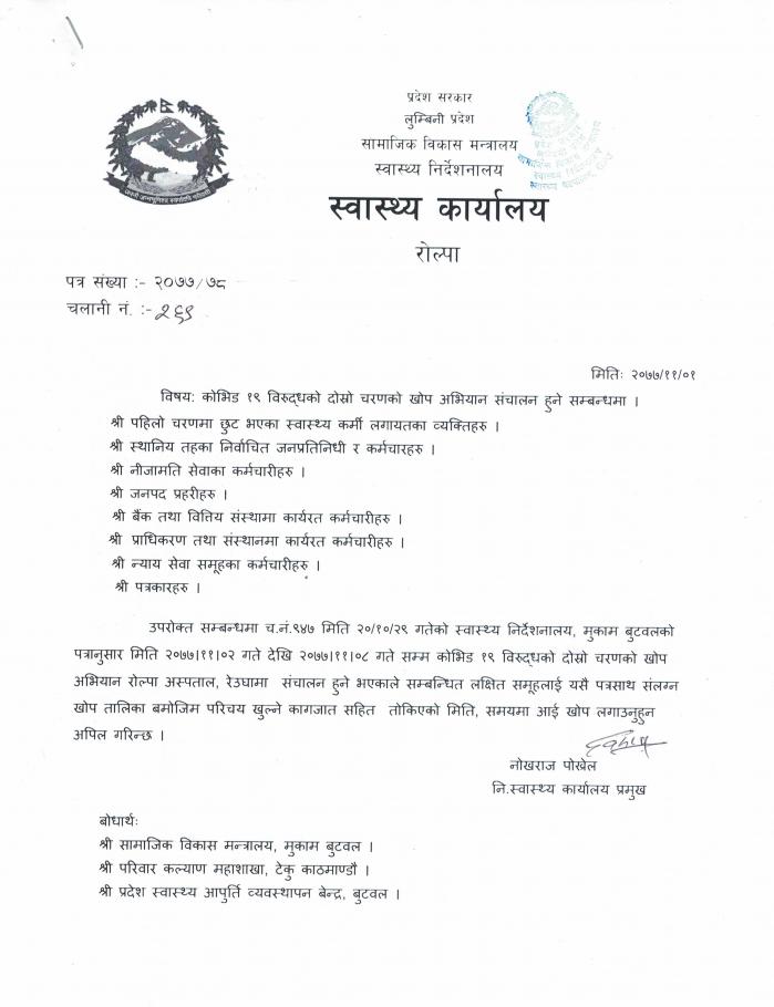 » कोभिड १९ विरुद्धको दोस्रो चरणको खोप अभियान सञ्चालन सम्बन्धमा ।