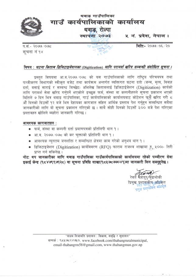 घटना दर्ता डिजिटाइजेशन(Digitization)का लागि परामर्श खरिद सम्बन्धी संशोधित सूचना ।