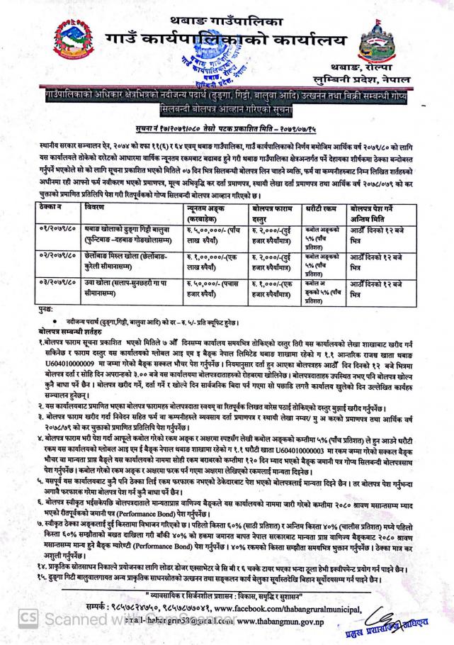 » ढुङ्गा गिट्टी बालुवा उत्खनन् तथा बिक्री वितरण सम्बन्धी पुनः सूचना ।