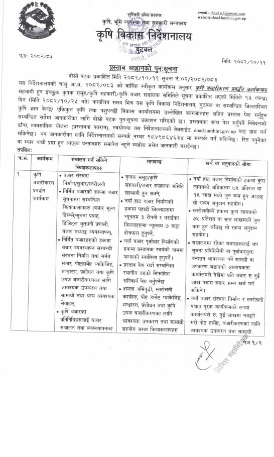अपाङ्गता भएका व्यक्तिहरुलाई प्रस्ताव आव्हान गरिएको सूचना ।