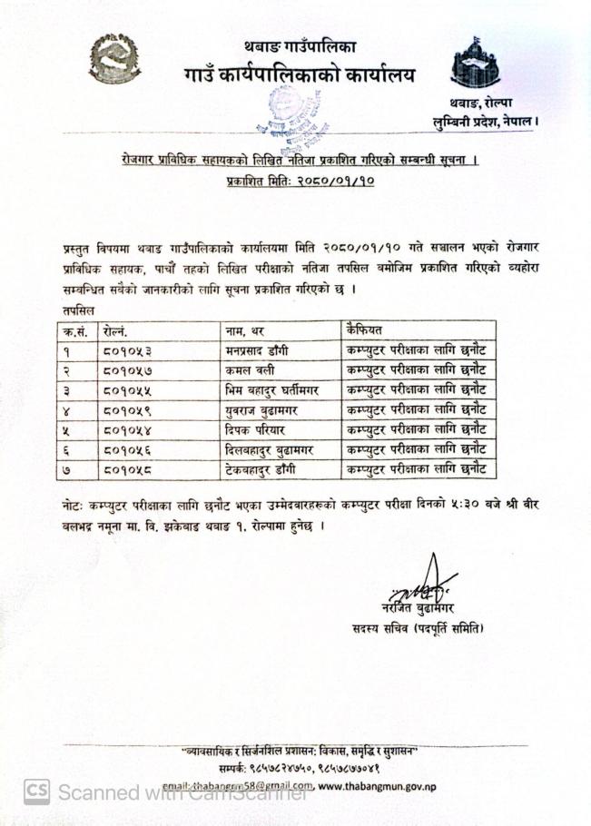 रोजगार प्राविधिक सहायकको लिखित नतिजा प्रकाशित गरिएको सम्बन्धी सूचना ।