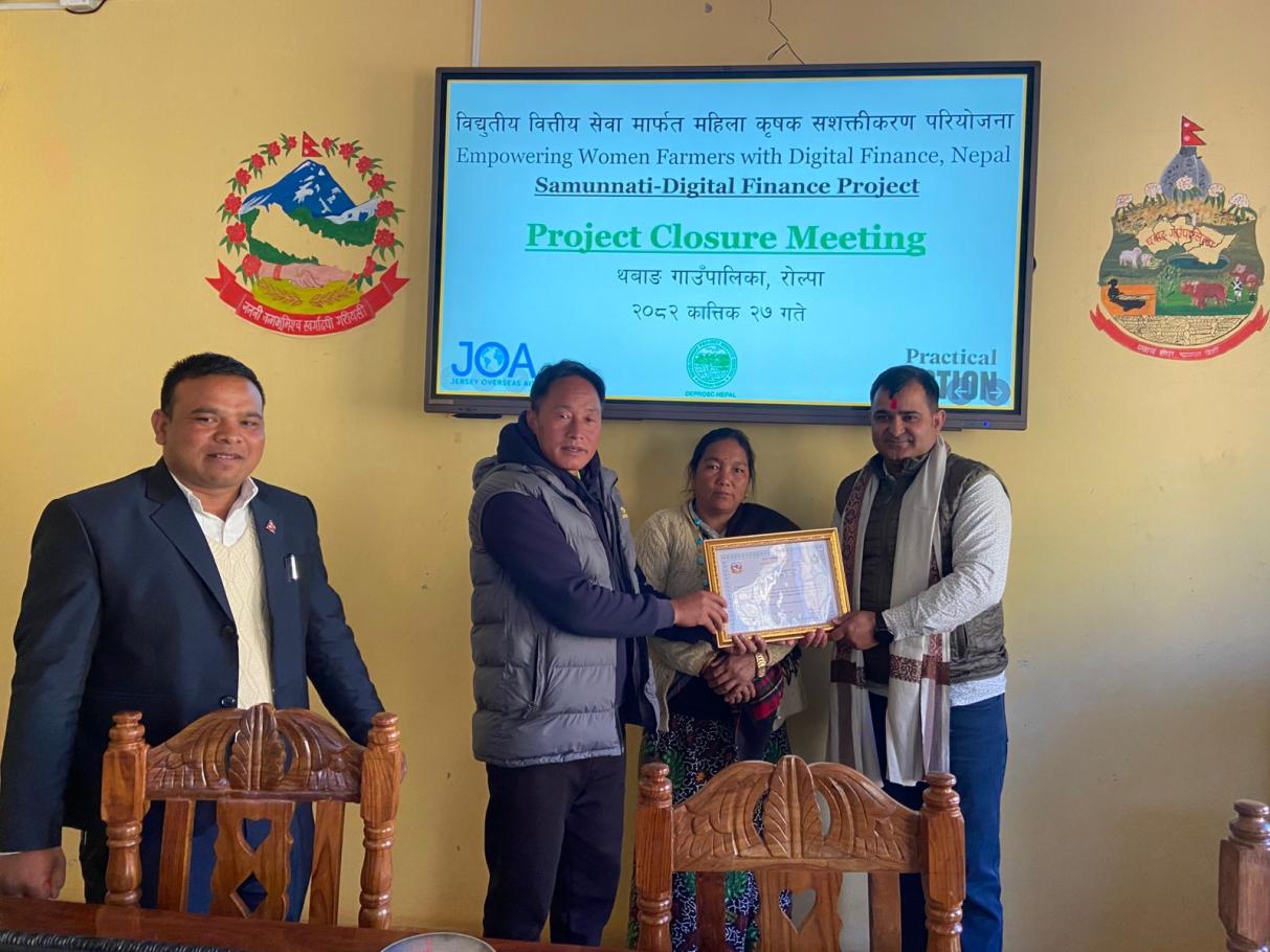 विद्युतीय वित्तीय सेवा मार्फत महिला कृषक सशक्तिकरण परियोजनाको आयोजना समापन सम्ब्नधमा ।