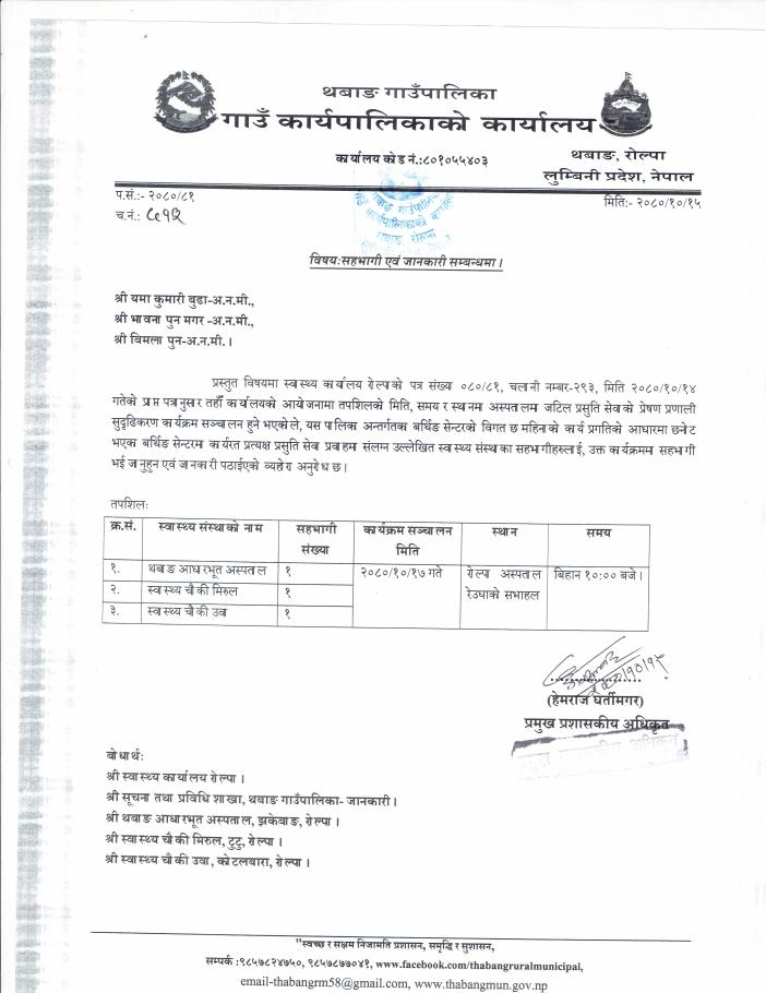 सहभागी एवं जानकारी सम्बन्धमा ।