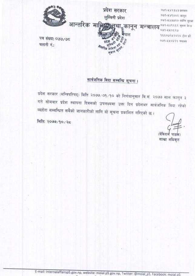 सार्वजनिक विदा सम्बन्धमा ।