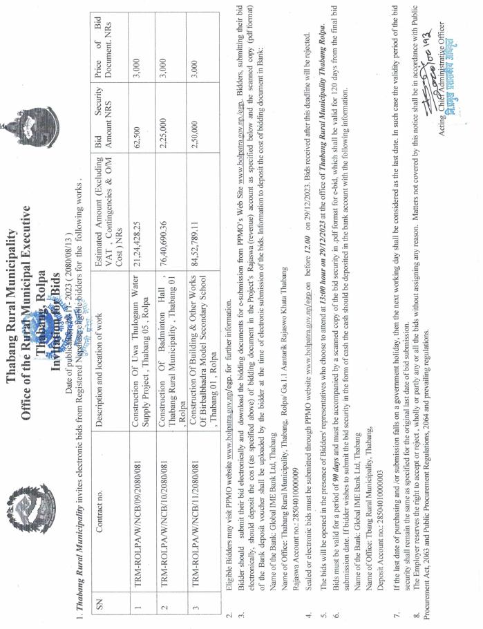सार्वजनिक खरिद/बोलपत्र सूचना