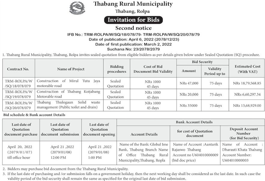 सार्वजनिक खरीद / बोलपत्र सूचना