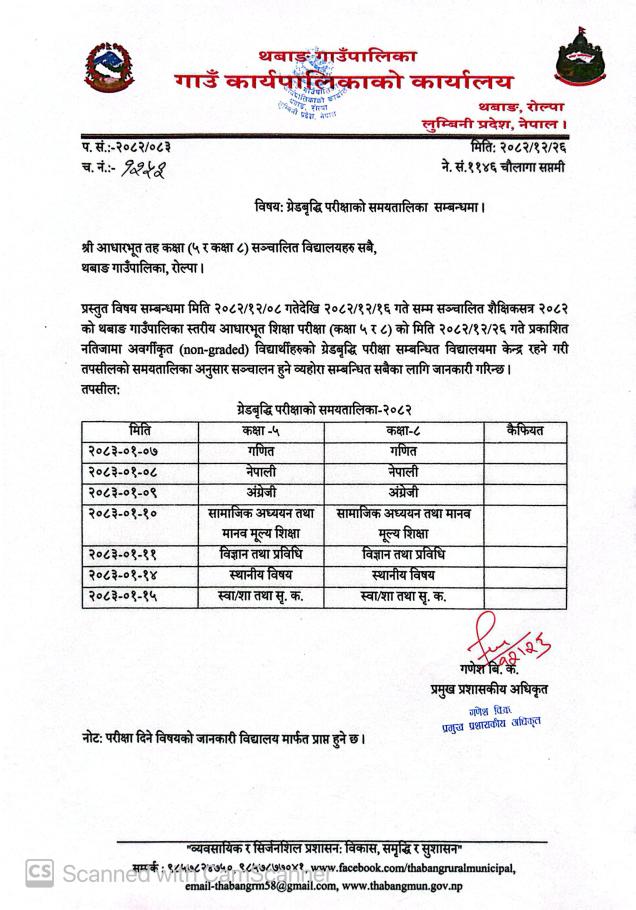 ग्रेडवृद्धि परीक्षाको समयतालिका सम्बन्धमा ।