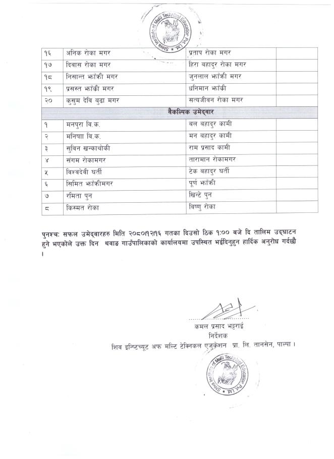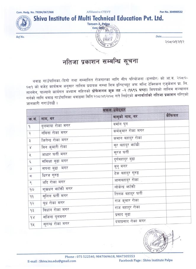 » Professional Cook तालिमका लागि छनौट भएका प्रशिक्षार्थीहरुको नामावली प्रकाशन गरिएको सम्बन्धी सूचना ।